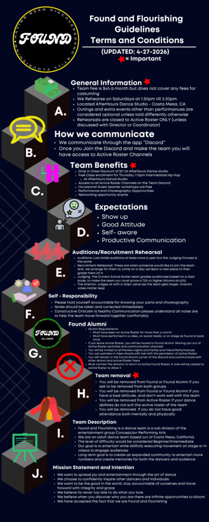 Found and Flourishing is a beginner dance team founded and directed by Jesicris Bato in 2025. Built on the belief that dance is for everyone, the team is made up of adults of all ages who share a deep passion for movement, expression, and connection. While each member is on their own dance journey, what unites them is a genuine love for performing, entertaining, and bringing energy to the stage. With every routine, Found and Flourishing seeks to spread joy, uplift spirits, and celebrate the beauty of dance in its purest form. For this team, it’s not just about steps and counts—it’s about passion, growth, and flourishing together through the art they love most.